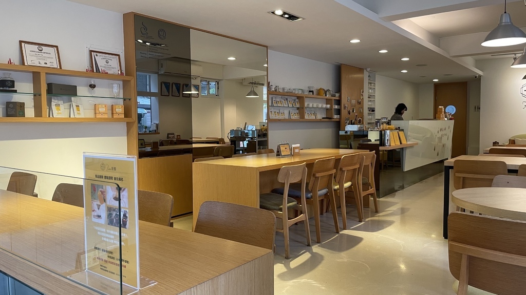 店內空間裝潢採取北歐極簡設計,雖然是比較狹長的空間,但由於採光非常得好,加上店內許多鏡面的設計,顯得相當寬敞舒適。店內有30幾個座位,桌椅都非常大氣,留有許多的空間,一張桌子坐滿四個人都不會覺得擁擠,還有舒服的沙發區可以選擇。我特地挑選了一張靠窗台的桌子坐下,在品嚐精品咖啡之餘,還可以享受透進來的些許陽光!