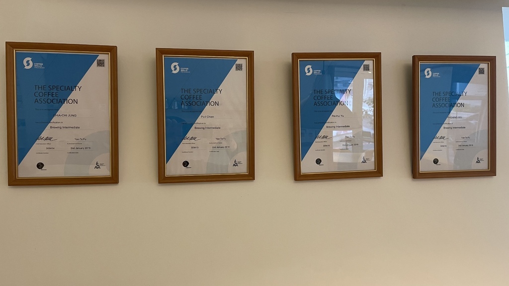 ▲ 波醍咖啡團隊的專業杯測師證照,負責監控咖啡豆進口及烘焙的品質