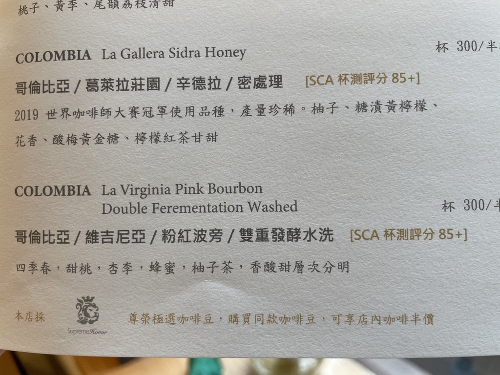 我和朋友今天點了兩杯咖啡,分別是衣索比亞的阿佐薩水洗,這支也是來自耶加雪芙的產區,有非常漂亮的花香及柑橘調性,涼掉的時候非常順口,就像喝花茶一樣;另一支是哥斯大黎加的黑蜜,這是哥斯大黎加最知名的莊園拉斯拉哈斯(Las Lajas)莊園,這一支完全結合莓果、葡萄及巧克力的風味,口感太豐富了,真不愧是知名莊園!
